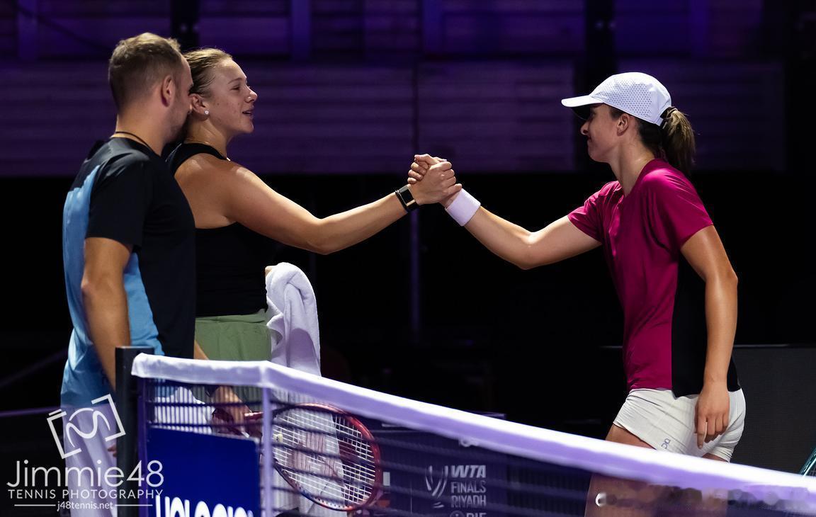 Amanda昨日和斯瓦泰克一起合练,01双星[努力]wta[超话]