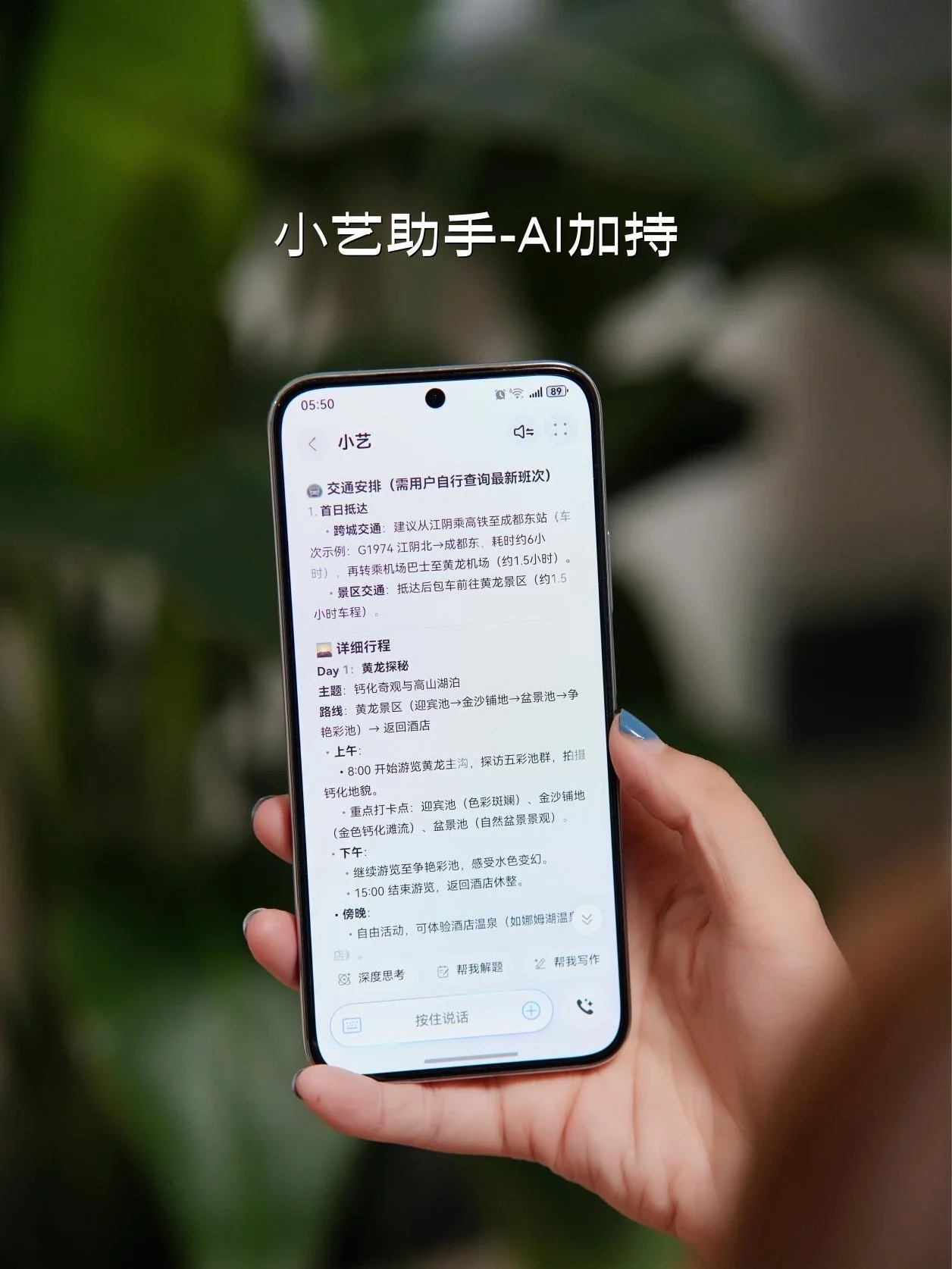 ③小艺识屏对话,刷到攻略贴→长按屏幕→自动生成行程表+订酒店比价!遛娃说走就走