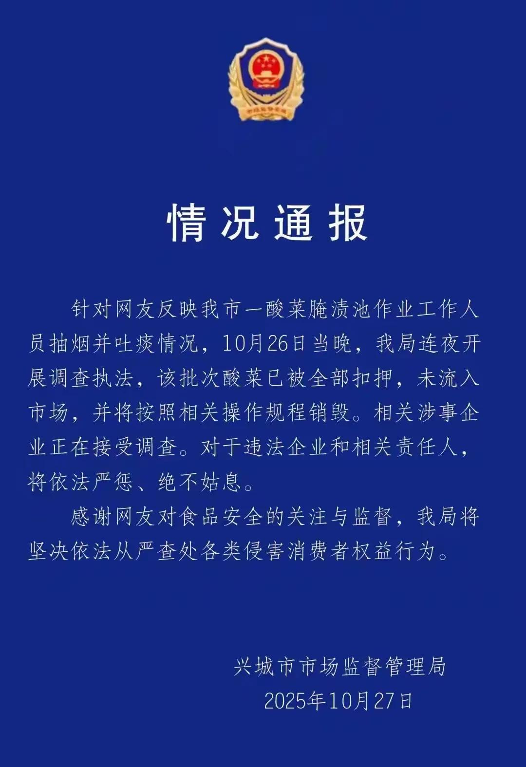 这种人太可恶了,应该枪毙! 最近辽宁发生一件食品卫生事件,食品安全问题关系到每个人生命健康问题,辽宁一名工人在工作时,向酸菜池吐痰和烟头,太可恶了! 首先这名工人应该承担相关责任,如果没有被发现呢?也不知道是不是第一次?还是说是惯犯,以前出现过类似事件,让这些素质低下的人承担相关责任。 其次就是这家企业管理有问题,平常安全教育是否到位?企业规章制度是否落实等等问题? 最后就是监管部门应该如何落实食品安全问题,有人报道就追究责任,没有人报道就……监管部门一定要从根源上解决食品安全问题。 #食品安全问题# #食品品质警示# #食品生产乱象#