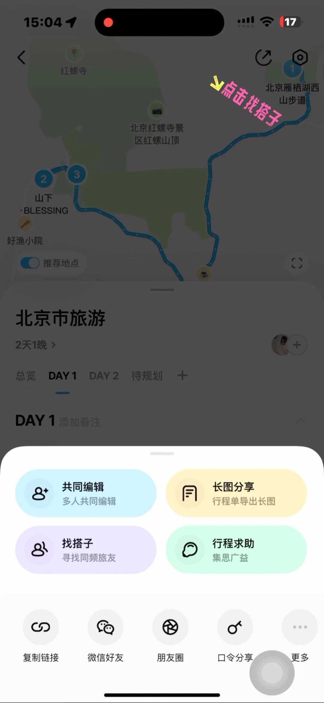 🚗自驾出行:西山步道观景👉吃饭山下·blessing吃饭住宿👉红螺寺游览