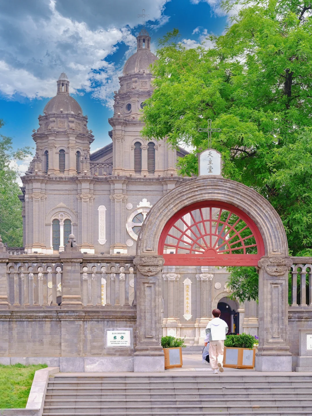使馆大门的外形以凯旋门很像和法国邮政局旧址挨着,中西结合式建筑美感