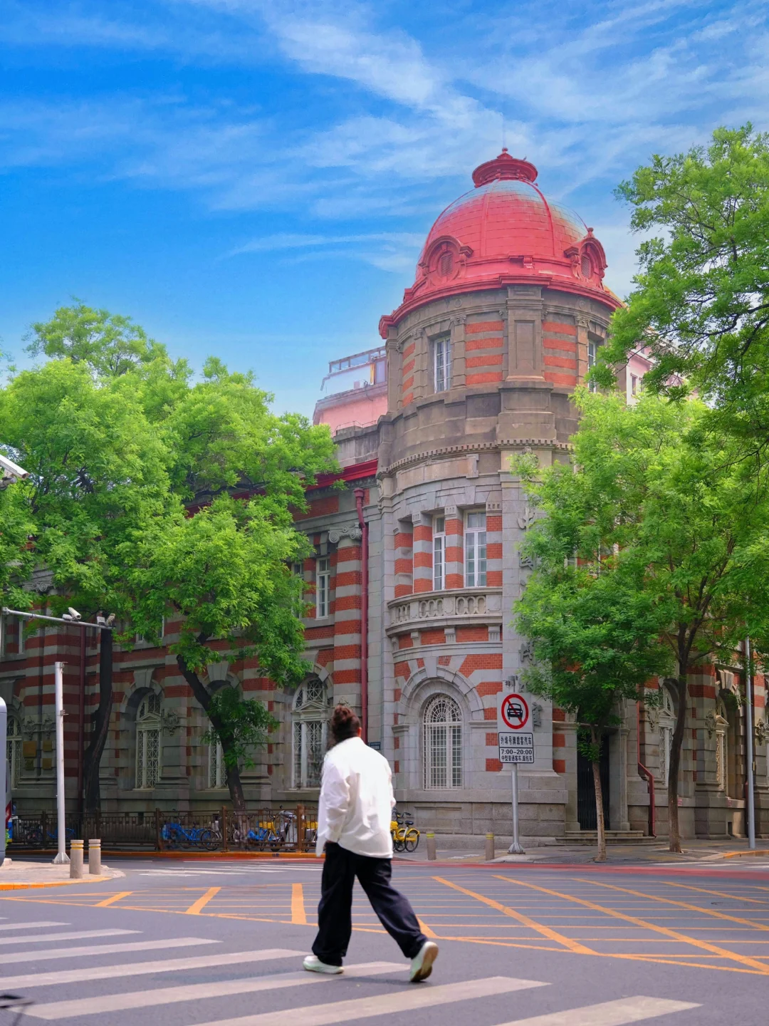 古堡式建筑红白色搭配的正金银行旧址,免费开放,打卡出片好看
