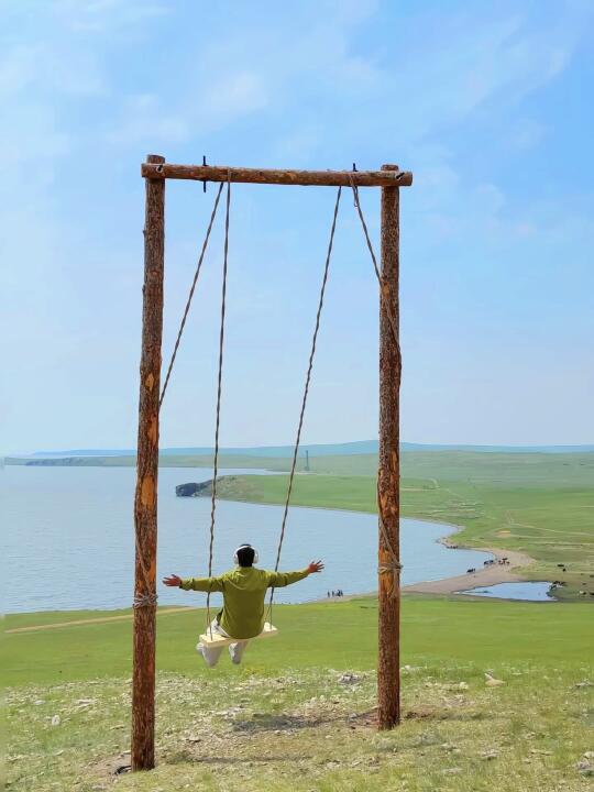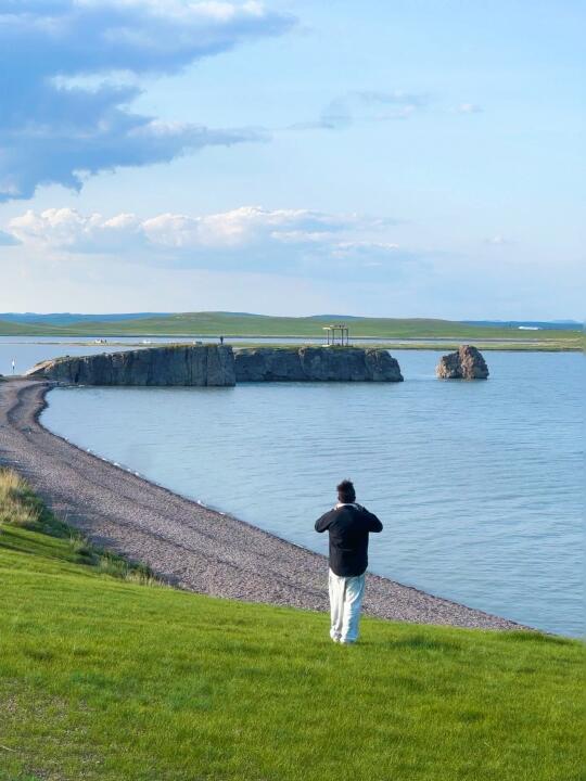 真的没骗我,竟然在呼伦贝尔找到了世界尽头 信我呼伦贝尔才能看到一望无际的大草原 草原的尽头真的是大海,有种脱离了现实的感觉 📍定位:成吉思汗拴马庄 🚘自驾:距离满洲里1h车程 🎫门票:免费 🌊呼伦湖晴天下蓝的像大海,草原黑色沙滩,像极了白崖 🌅时问允许,下午5点左右来等晚霞,太阳从草原落下,染红半边天,独属于你的浪漫。 📷穿搭以白色或者黑色,跟这里的高级感更搭。