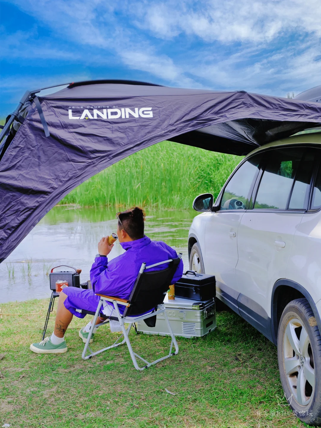 [拔草R]车可以开到水旁再打开车边帐[折叠椅R]简直太舒服了