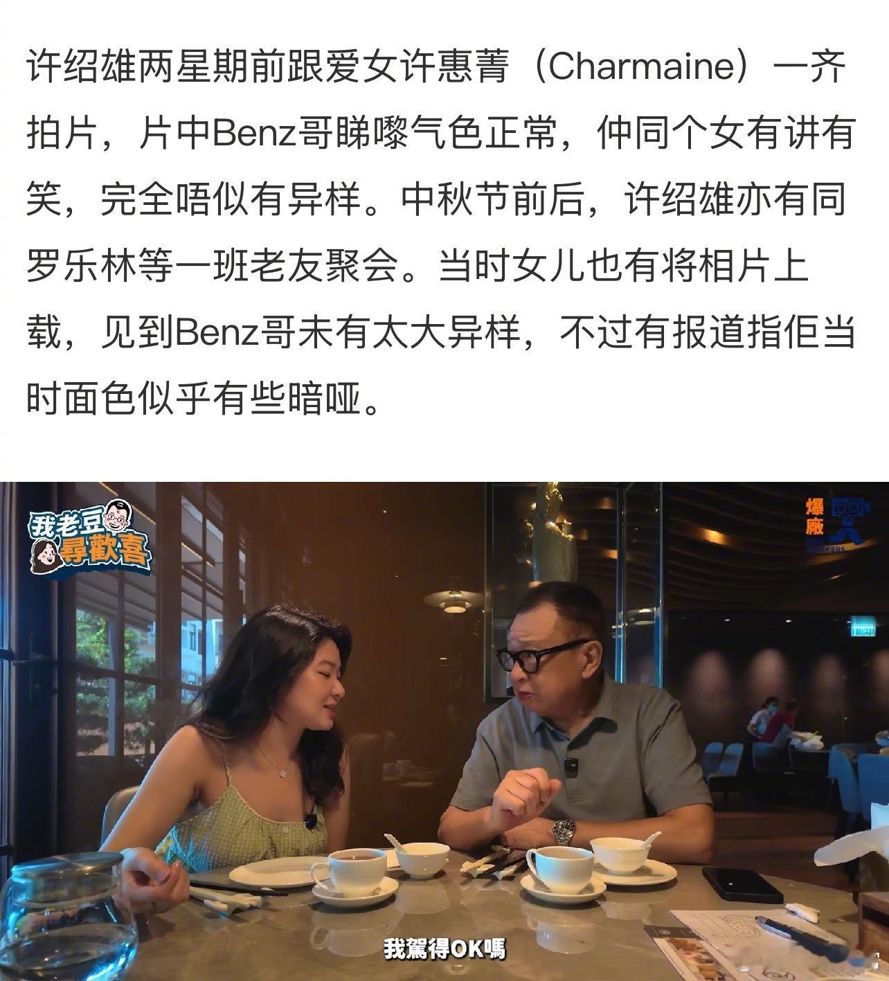 许绍雄最后一次公开露面是中秋节和朋友们聚餐,九月还被拍到跟女婿一起买菜,最后一条