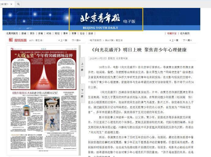 向光花盛开上宣实力这一块 《向光花盛开》的内容是为了呼吁大家关爱青少年心理健康。改编自网络劝生者真实经历,用一个双向救赎的故事生动的展示了当下青少年的心理困境。这样的影片真的不应该被埋没!电影向光花盛开