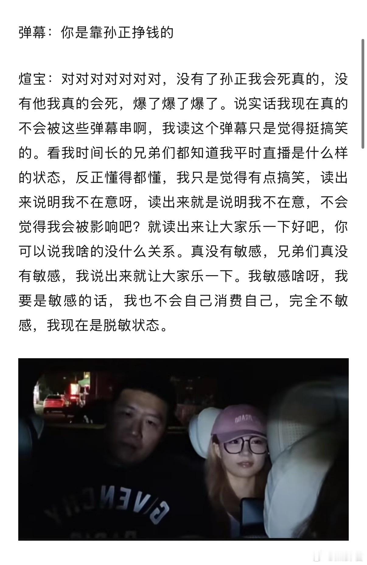 弹幕说煊宝靠孙正赚钱,煊宝说她现在对这些弹幕已经脱敏了,还好奇问弹幕,假如她有一