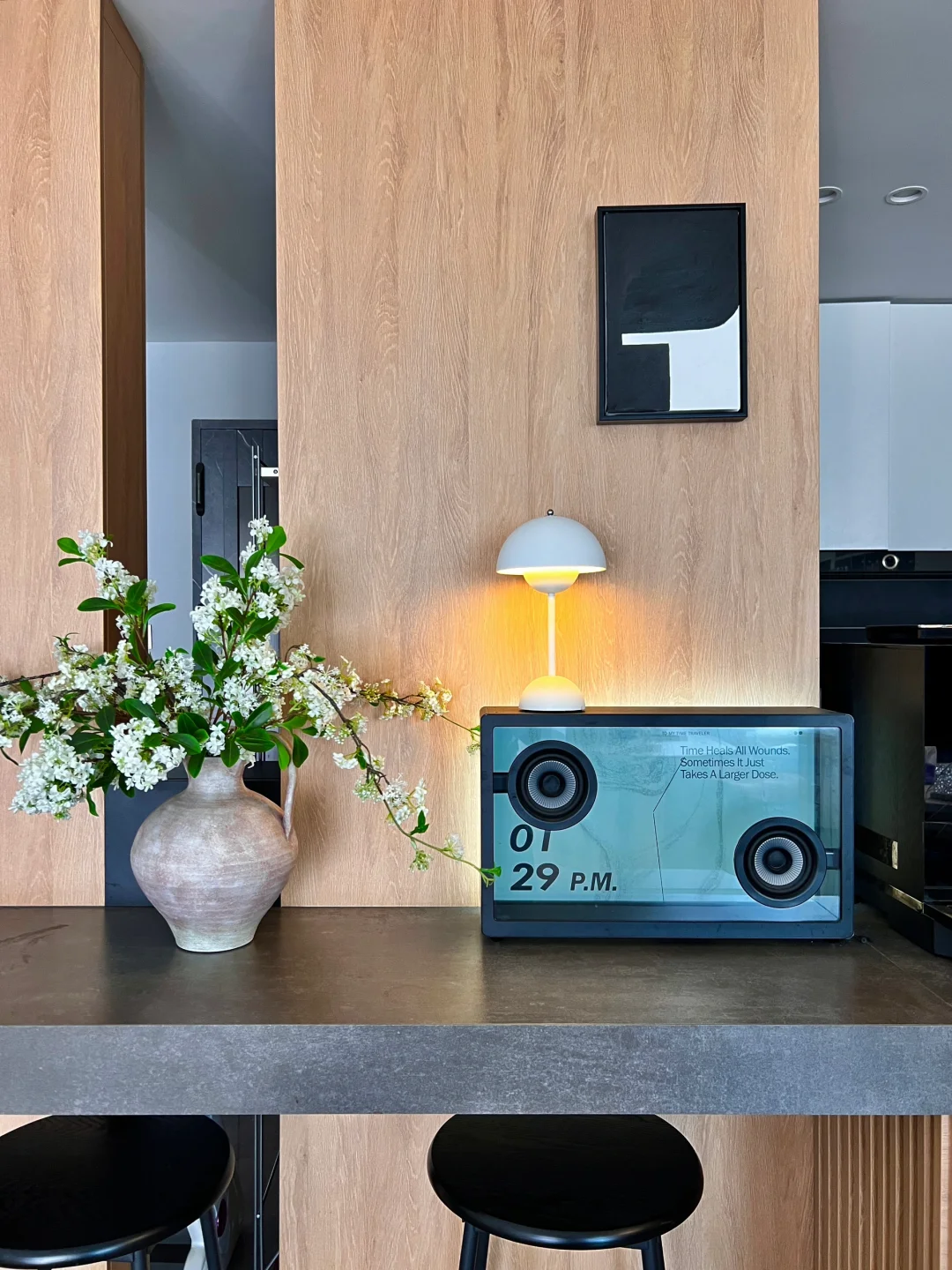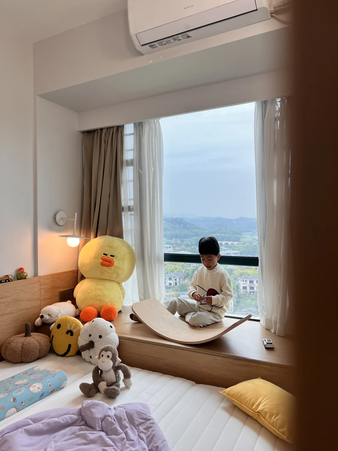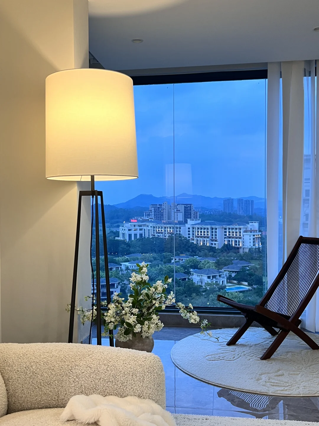 当初是为了窗外的景色买的房子,户型是非常不满意的,开发商为了三房都面湖,所以房间设计不太合理,客厅走到主卧要拐几个弯,经过设计之后成了我的梦中情房! 🏠关于我家: 建面126平,套内99平,两房一厅两卫生间一衣帽间一储物间! ➡️拆掉推拉门,打通阳台,客厅阳台一体yyds! ➡️不做复杂背景墙,极简电视背景简约又省钱! ➡️开放式厨房,让整个空间都很通透明亮! ➡️软装搭配色调以白色木色为主,白色沙发搭配舒适的地毯也增加家的温馨和氛围感!