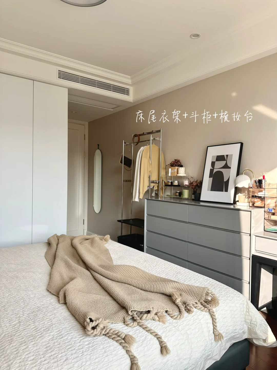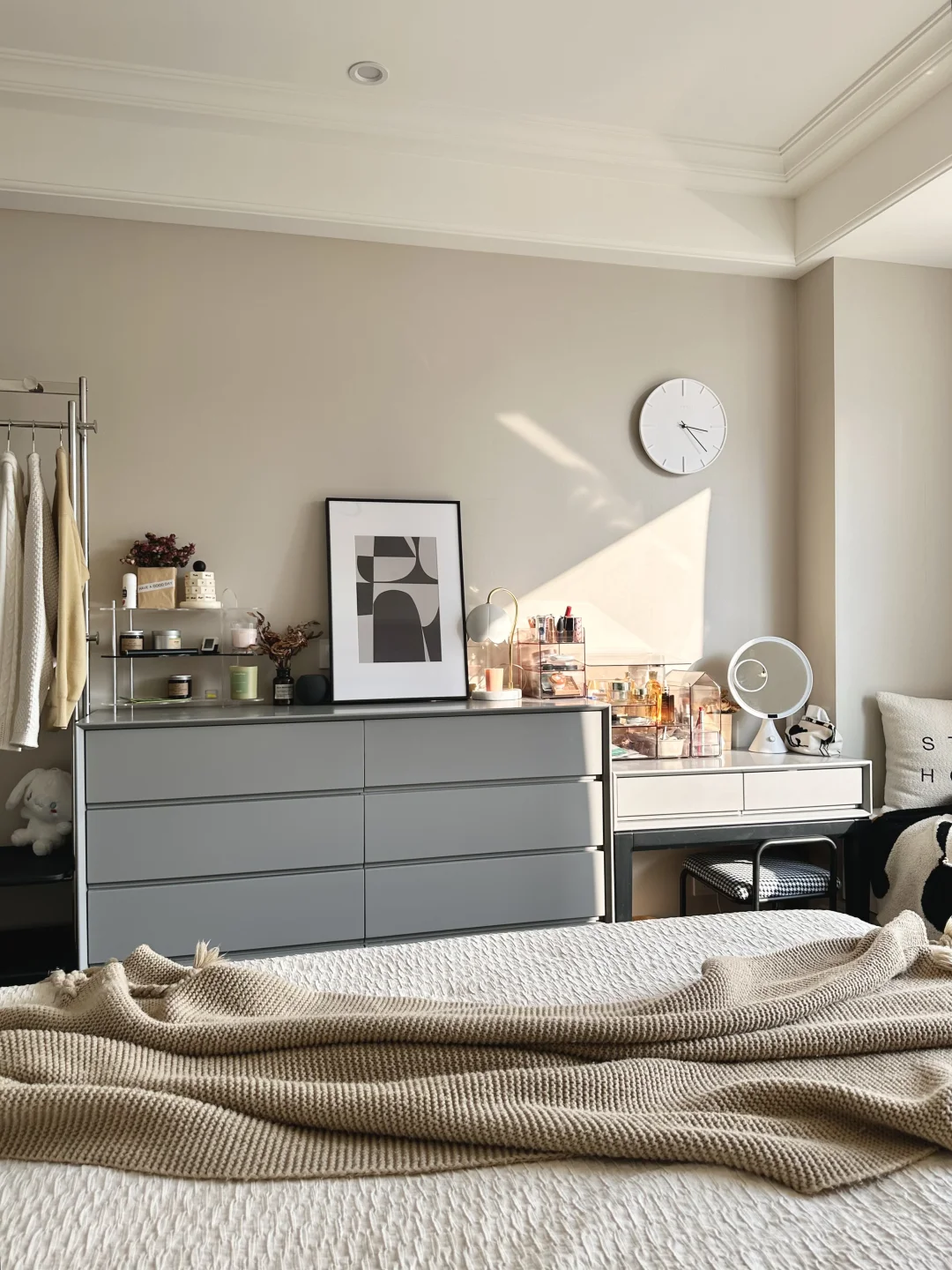 10㎡出头, 简单的黑白灰配奶茶色, 没有过多的装饰,没有鲜花娃娃多余的抱枕一堆布置, 简简单单 但真的很好眠🌙