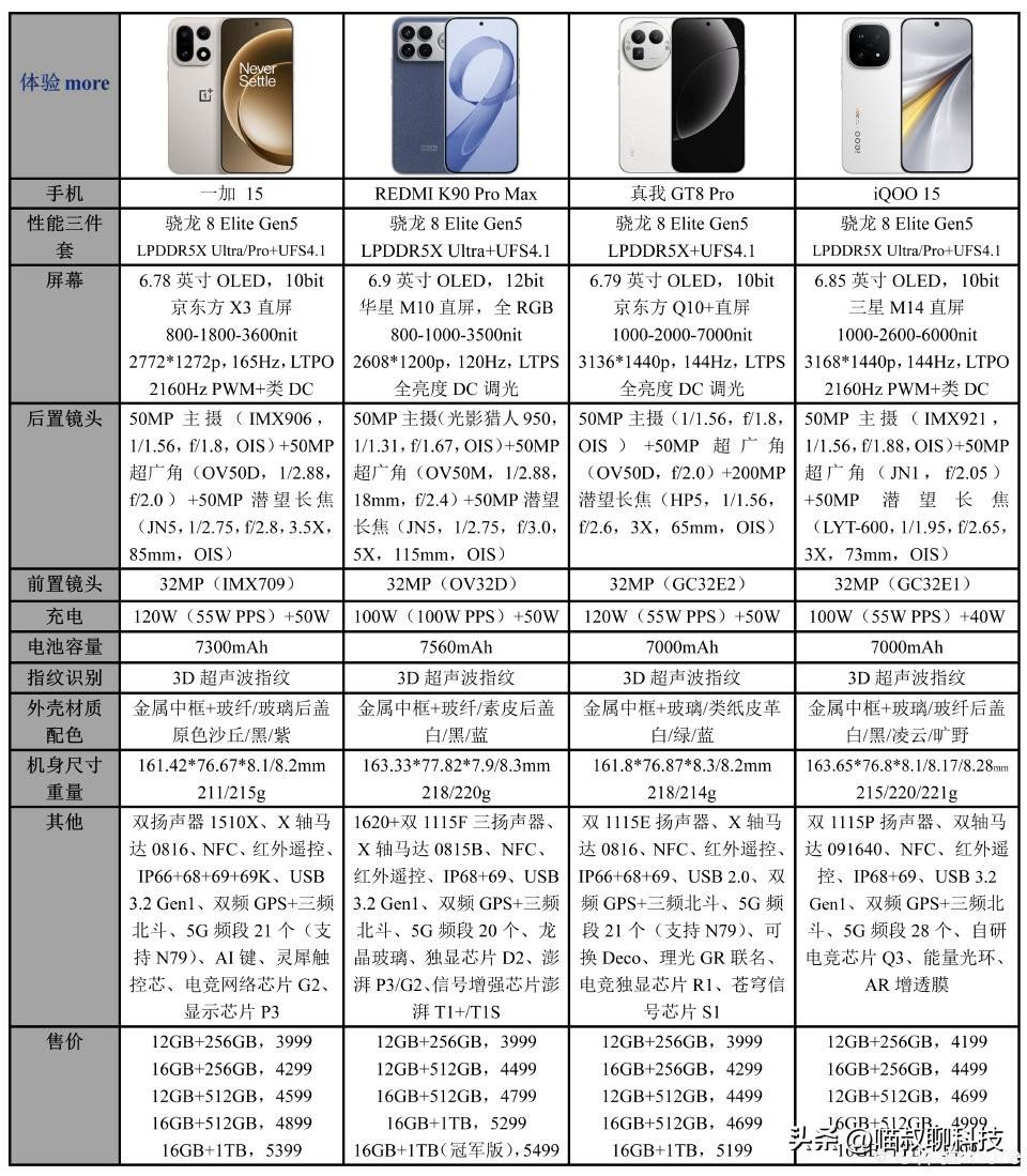 预算有限,子品牌旗舰机型该怎么选? 首先必须要说的是今年的手机定价是真挺贵,不但各大主旗舰机型不便宜,这子品牌旗舰的价格也提升了不少! 顶配机型纷纷破5千,起售价也都来到了4千块,给人一种大家都很有钱的错觉... 不过也必须要说的是现如今子品牌旗舰和主旗舰的配置也确实逐步拉小的距离,甚至还有主旗舰没有的亮点。 其中最新发布的一加15,主打的就是165Hz超高刷体验,非常适合玩FPS游戏居多且是电竞爱好者; 而iQOO 15则是推出了主旗舰都少有配置的三星2K屏,屏幕素质相当优秀,非常适合对屏幕要求比较高的用户; 再就是红米K90ProMax 直接和Bose 联合调音推出了2.1 立体声系统,音质比各大主旗舰都优秀,非常适合喜欢外放听歌的朋友; 最后还有真我GT8 Pro,不但和理光 GR进行了联合,而且还用上了2 亿像素 1/1.56'' 三星 HP5潜望长焦,属于是喜欢拍照的不二选择。 当然除了子品牌的旗舰选择外,去年的主旗舰机型也是不错的选择,价格方面甚至能更优惠~