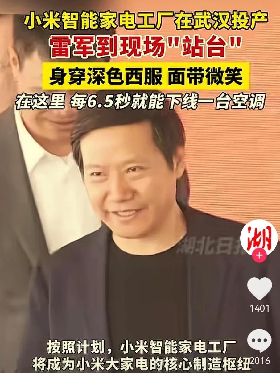 小米在武汉家电智能工厂在武汉投入使用,雷军参加了活动并发表讲话,有几点值得思考:
