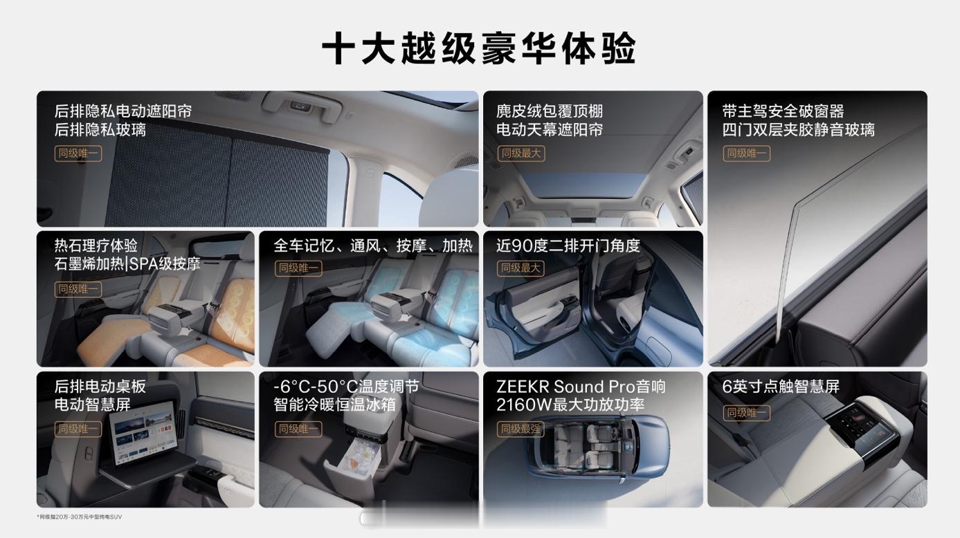 二排电动躺椅、腿托、遮阳帘、桌板、智慧屏,通风按摩,中央扶手6英寸点触智慧屏等;焕新极氪7X实车体验焕新极氪7X家庭豪华新标杆