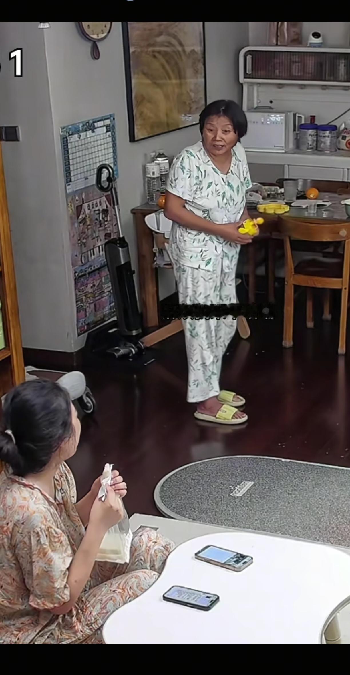 半夜十二点,女子被饿醒,坐在客厅桌子边啃面包。婆婆口渴起来倒水,瞧见儿媳在吃面包