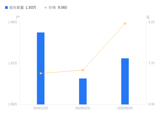 日期A股户数(户)流通A股户均持股数(股)户均持股市值(万元)2025-09-302507716761.3917.472025-06-301927421807.3119.762025-03-311897922146.2716.542024-12-311965221387.8515.742024-09-302035320651.1716.772024-06-302022720779.7913.742024-03-311999921016.6116.882023-12-312052720476.0120.352023-09-301958921456.4625.232023-06-301985421170.0627.50