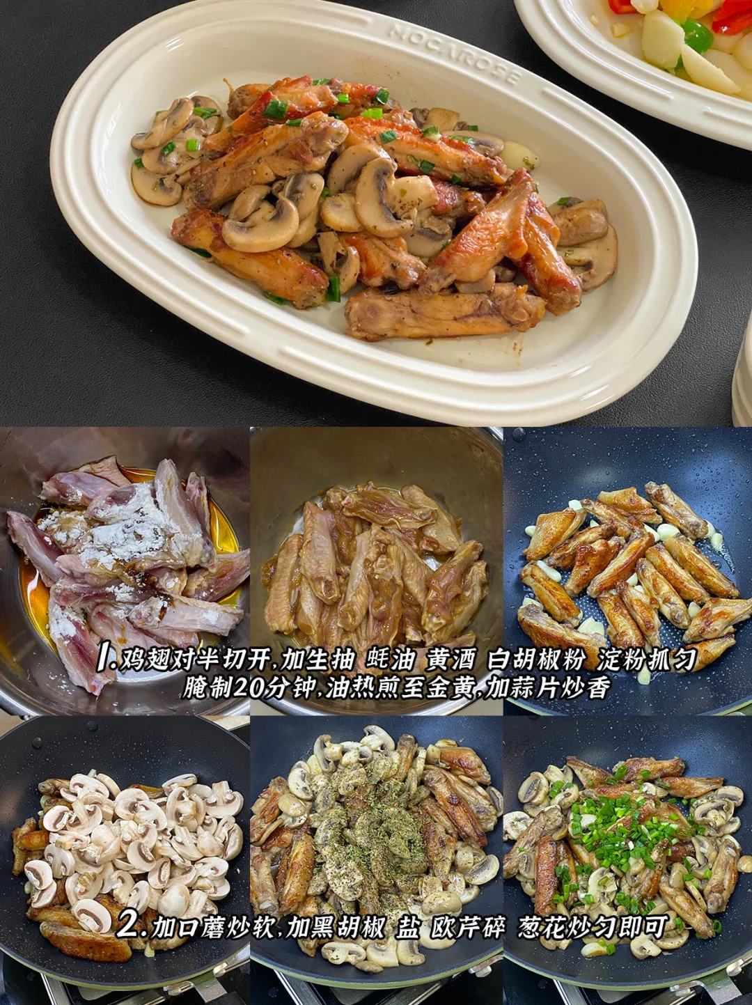 2️⃣山药排骨汤+黑芝麻炖奶+口蘑鸡翅+彩椒小炒