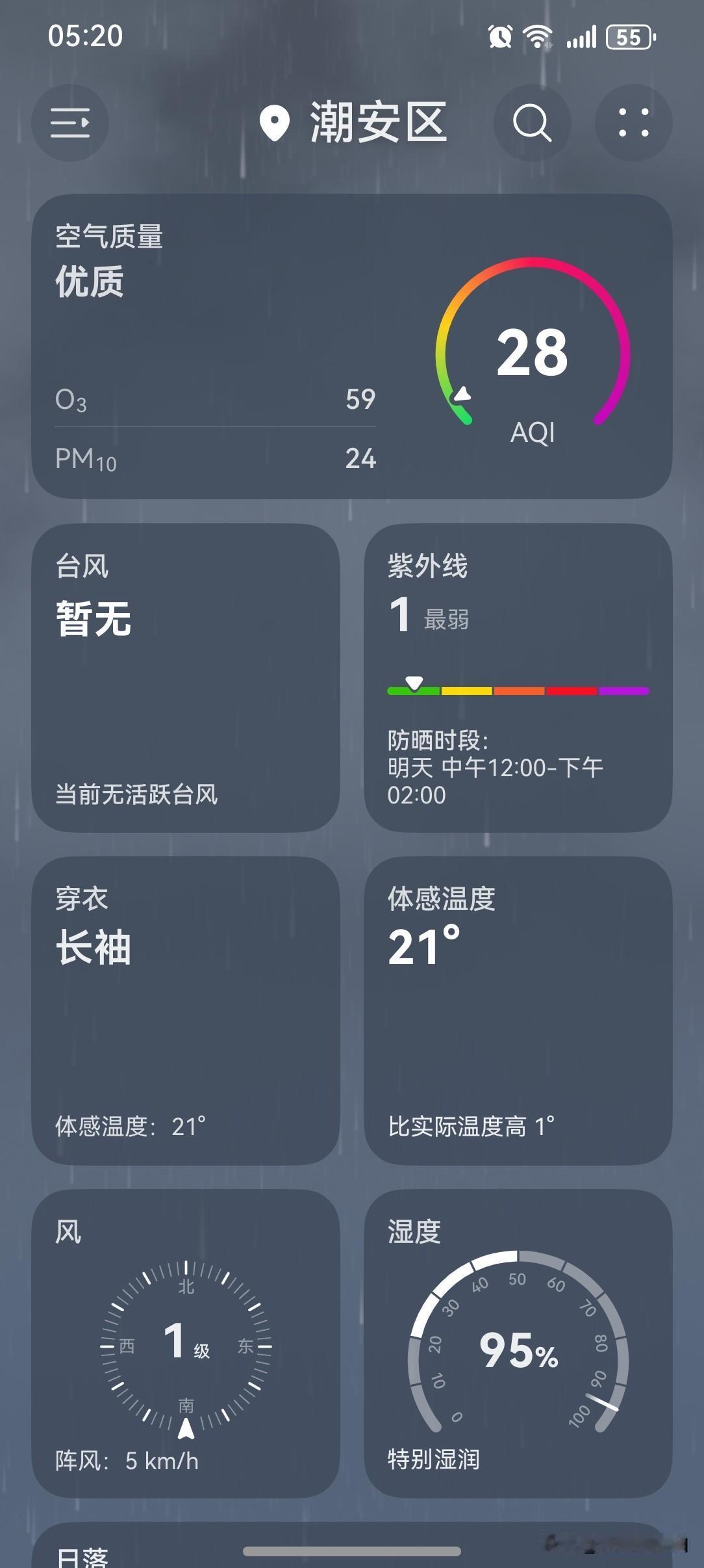未来几天, 广东气温先升后降! 短袖、长袖、外套……任意穿! 于是街头出现一道道"四季同框"的风景线! 当短袖衫碰上了外套时, 各自内心:他(她)不冷/热吗? 28~31日, 我省云量较多, 粤西、珠江三角洲西部、韶关、清远等西部地区有分散小雨; 粤北偏北市县最低气温15~18℃, 早晚体感清凉。 今天(28日), 潮州有中雨, 气温19~26℃, 此刻气温20℃, 体感温度21℃。 从中午开始就下起了雨, 越下越大, 停不下来的节奏! 整整下了一个下午的时间, 到现在也没停。 由于下雨的缘故, 不到五点天已经开始暗下来了。 一场秋雨一场寒, 天一黑, 气温明显下降了, 感觉有点冷! 希望雨水早点停下来吧!