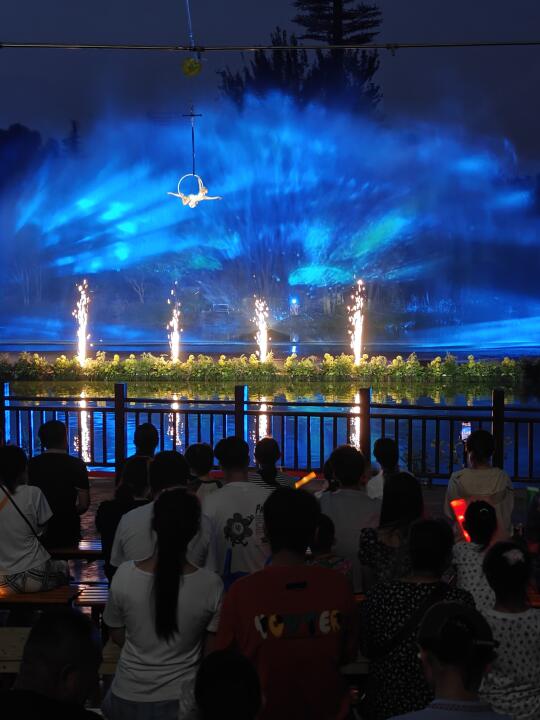 湖上炫酷灯光秀、高空芭蕾舞表演、高空杂技、科学实验室buff叠满