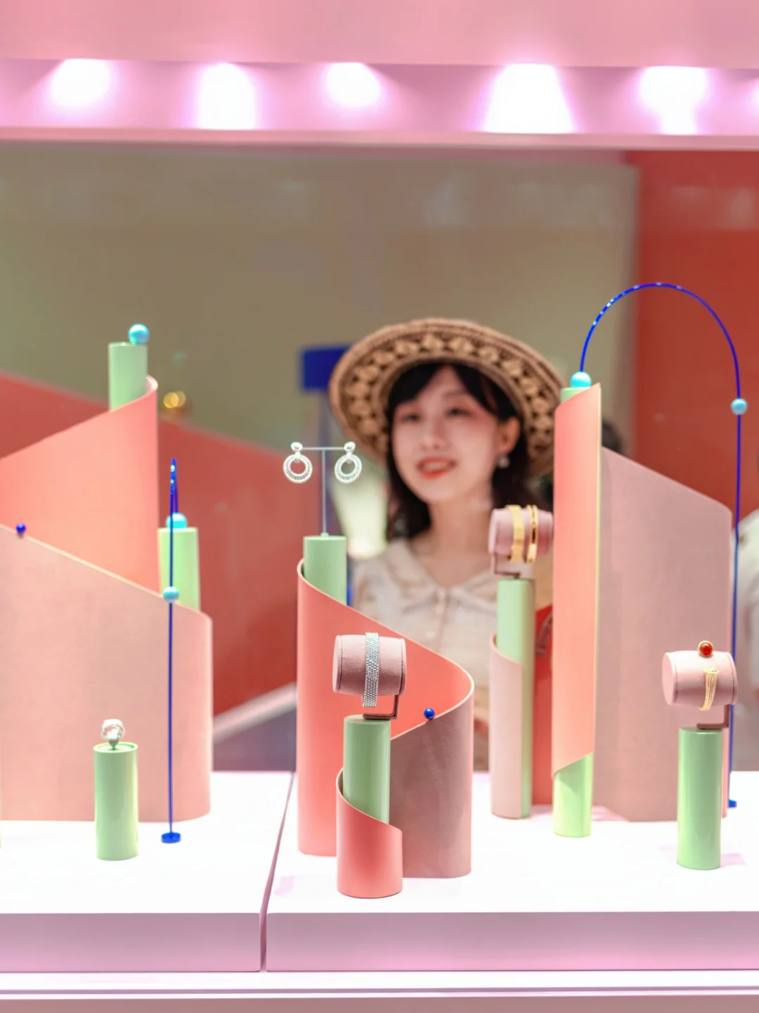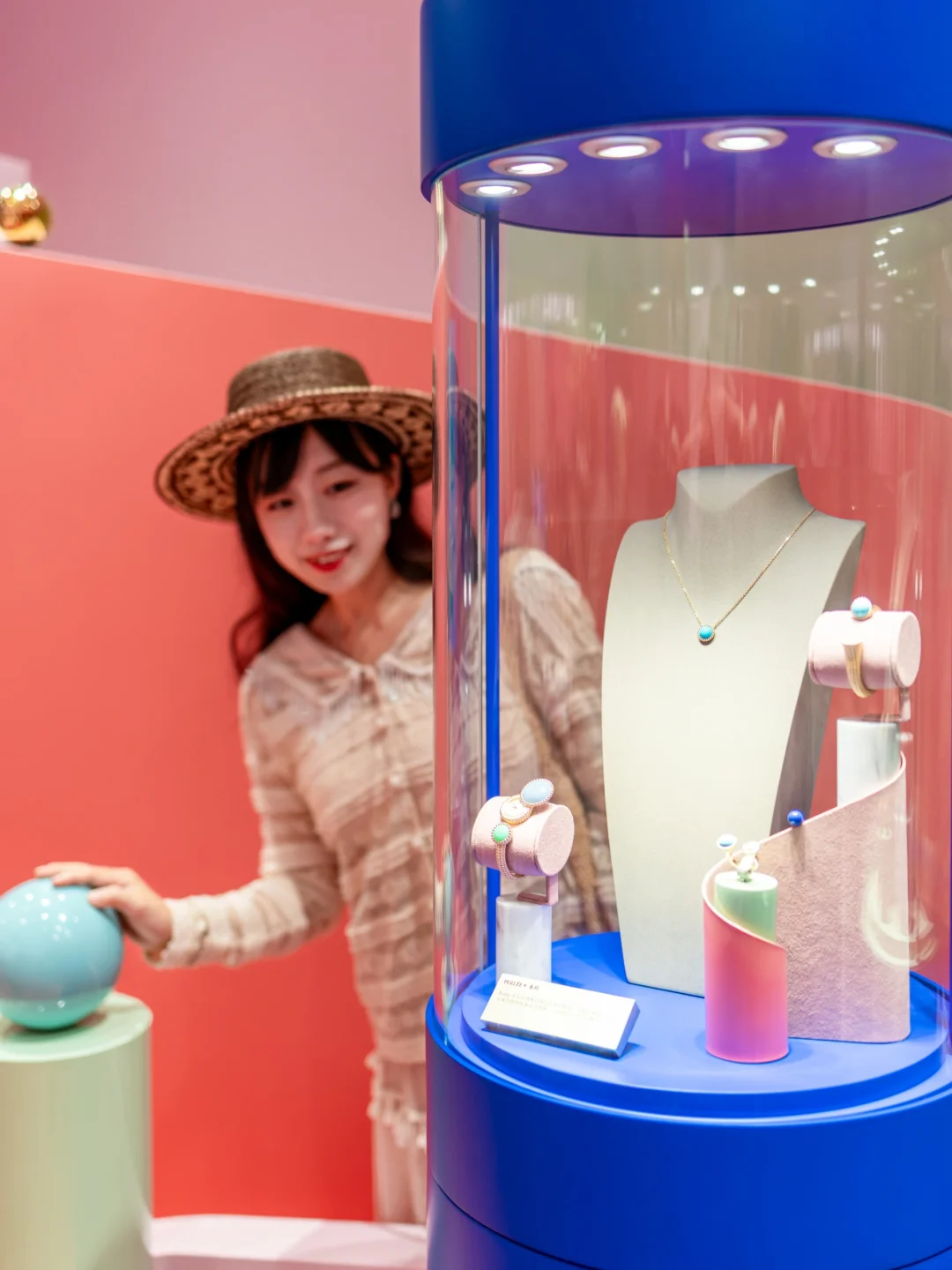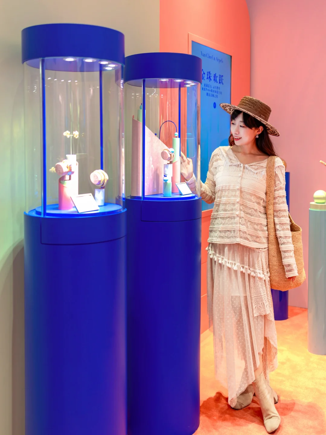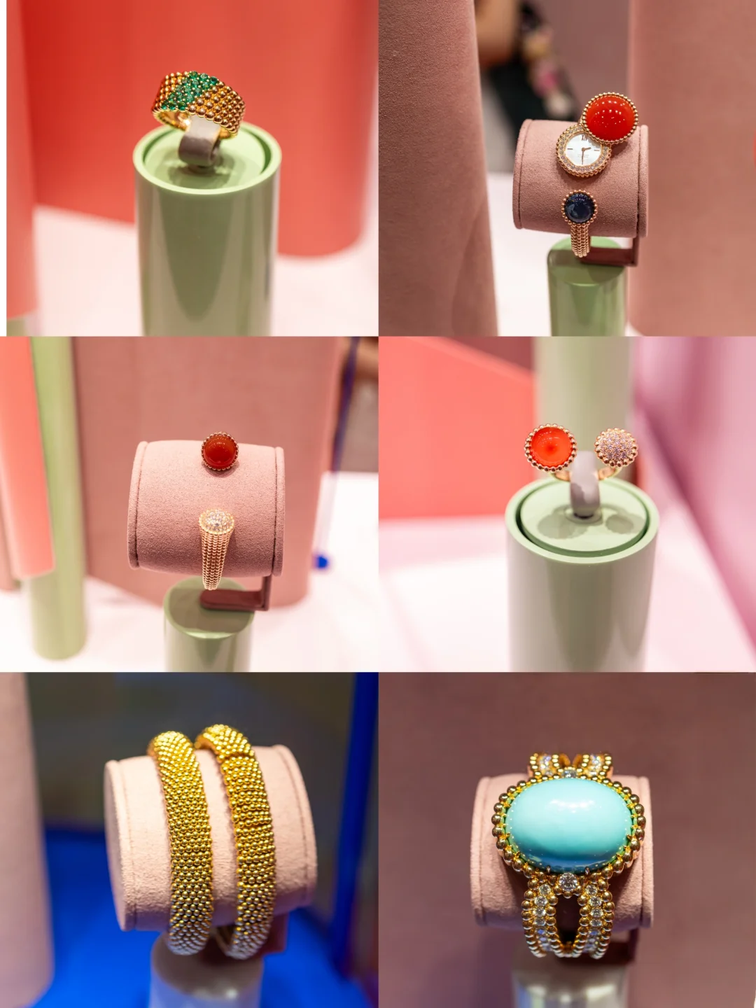 光影和装置互动感强,随便一个角度都很出片,还能近距离欣赏到珍贵的古董Perlée手表,多巴胺色系珠宝……精致到挪不开眼!