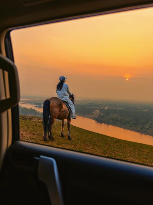 车可以开到山上,在这里骑马等落日,