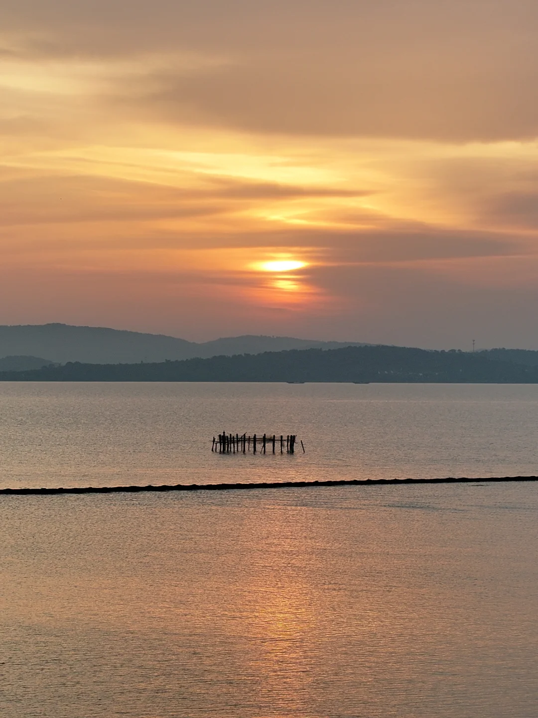 🌅早晨看日出,傍晚看落日把湖面镀金