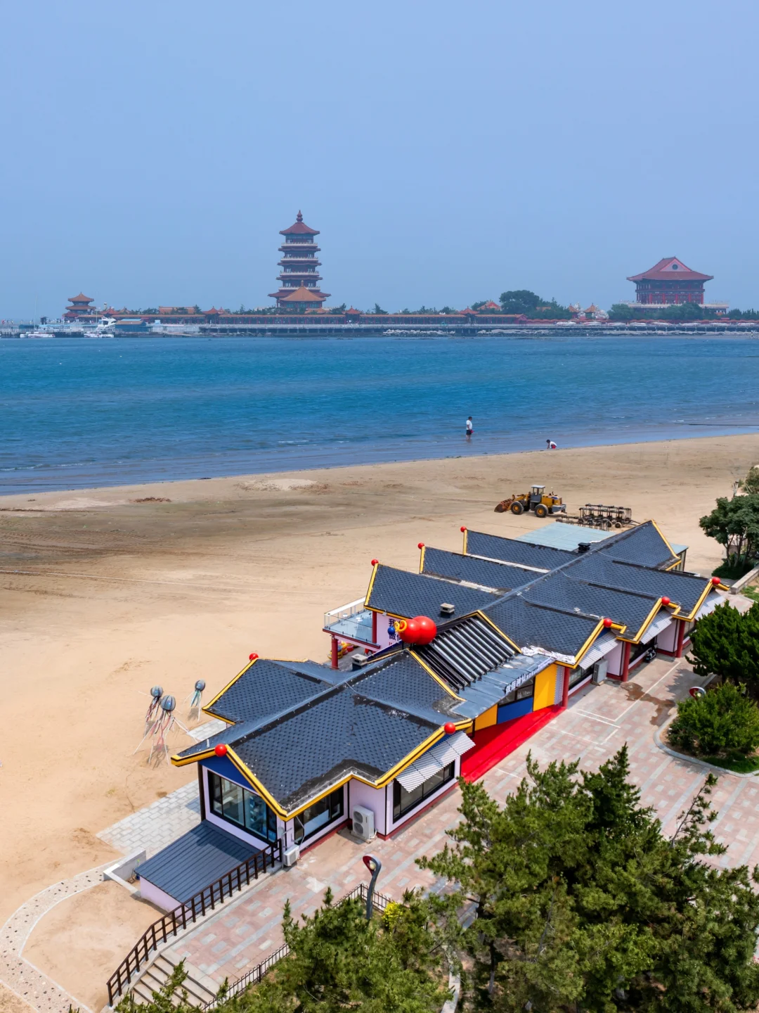 在第一海水浴场,屋顶红色宝葫芦是标志