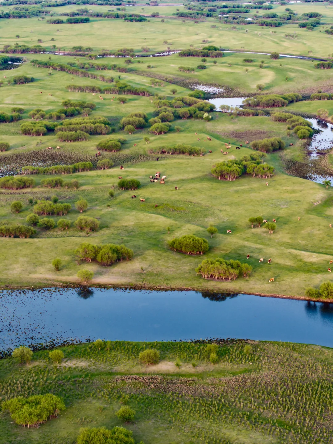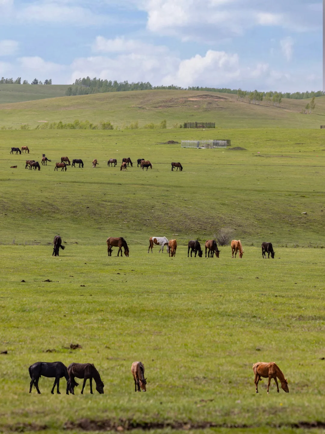 很少有什么地方能像呼伦贝尔一样,地平线上演天地壮阔,低垂云层仿佛能压弯草海,成群的牛羊化作大地涌动的波涛,蜿蜒的河流像银链般谱写无垠画卷,奔跑的每一次呼吸都灌满自由与苍茫,很庆幸这个初夏来到了这里,带给我心灵的震撼和治愈。