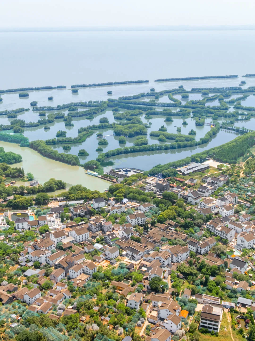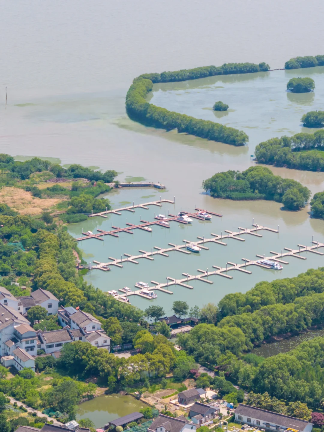 我们乘船出发太湖上的小岛三山岛