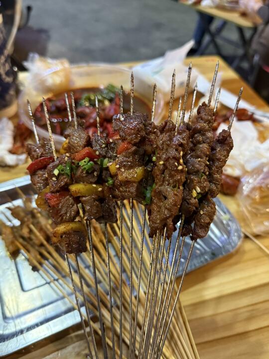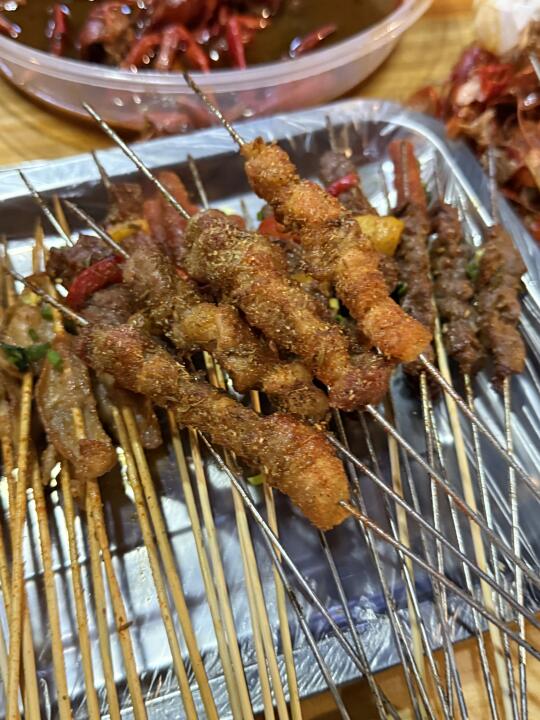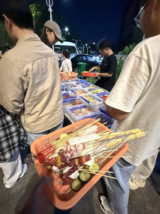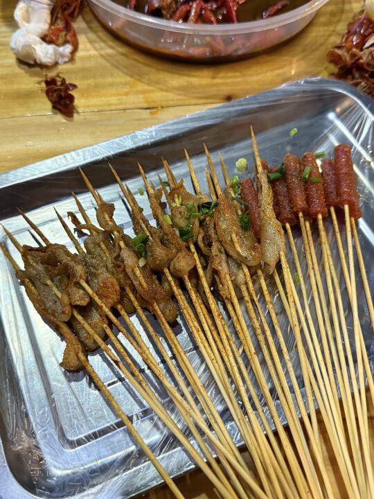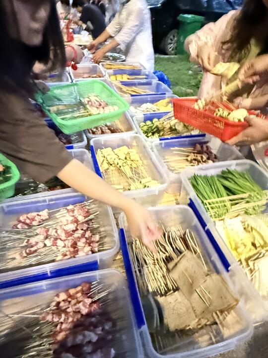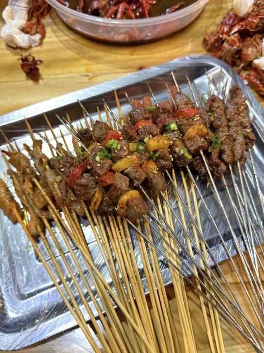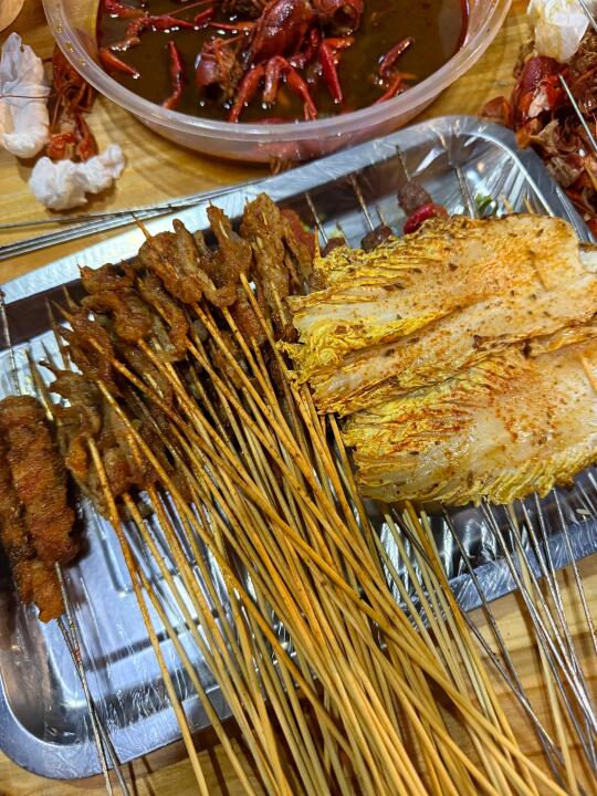 超级多人!!想吃上第一波一定要提早排队!(19:30出摊)食材好干净新鲜~物美价廉~龙虾才25一份😲蔬菜都是一元一串…牛肉3元一串…反正在别处是没吃过这么便宜的烧烤…人均50能撑的要死!