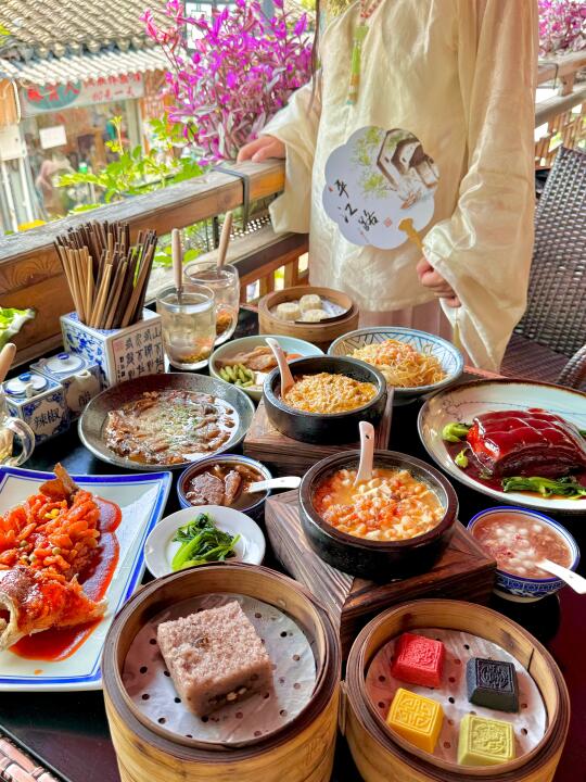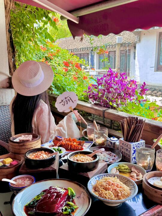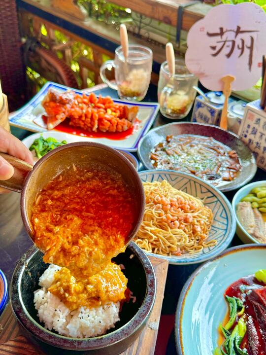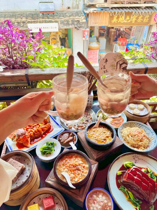 ➓ 可以在平江路 尝 一次地道的 苏式早茶 再离开苏州,在屋顶露台hin有氛围,苏式 糕 点软软糯糯挺好吃(不过有个🍹里面有薄荷味,这个我吃不太惯,蟹 粉 拌 饭挺喜欢的