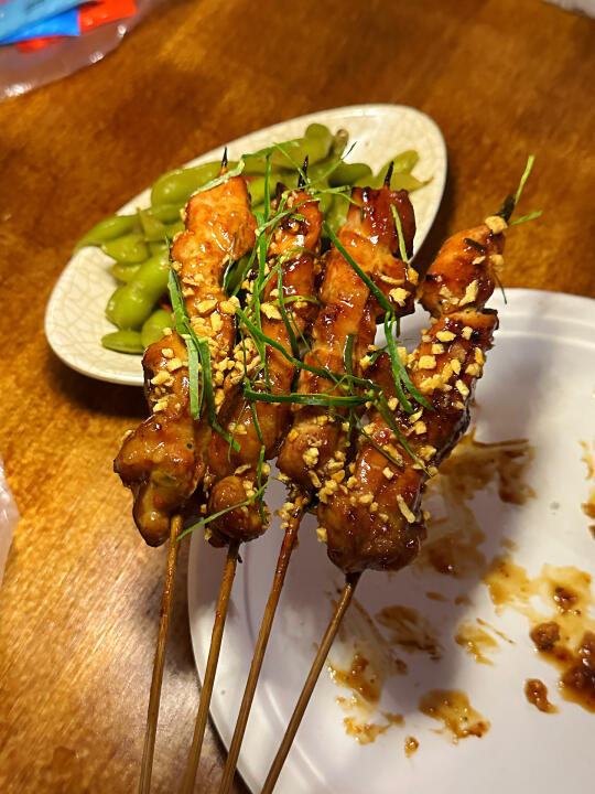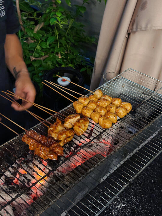 南洋咖啡的慢闪泰式传统烧烤 终于吃到了[偷笑R][偷笑R] 泰奶➕泰式烧烤绝配啊啊啊🥤 - 主打炭火现烤 价格实惠 份量超足 泰式口味 偏甜口 花生碎超香 有柠檬叶的加持更解腻 ✔️种类不多但都是必点: 泰式烤肉串 烤鸡腿肉 烤墨鱼饼 泰奶是易拉罐的,非常方便打包!! 🔴慢闪地址: 【醺】-DRUNK BAR 钦南区兴桂北路万锦悦府7-1718号商铺 🔴慢闪时间: 每周六、周日晚上8点营业