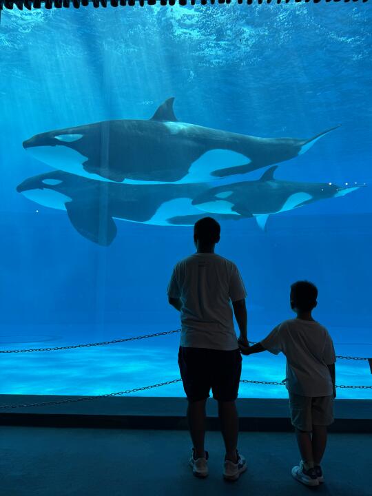 “虎鲸科普剧场”是镇校之宝!在一楼隔着玻璃看虎鲸优雅游动;在二楼欣赏“海洋霸主大巡游”,虎鲸猛地一个冲浪,孩子超兴奋🐬听完讲解,yeye秒变虎鲸小百科,彻底爱上海洋霸主