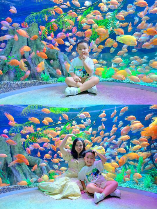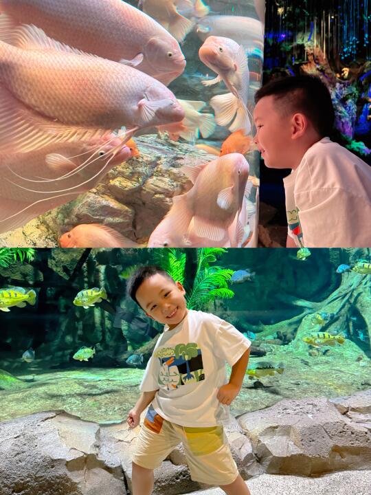 进门就被宇宙世界巨型球幕震撼住🌍一路打卡亚细亚星球、雨林星球、峡谷星球,欣赏15万尾海洋宝贝:海豹、海牛近在眼前…yeye边逛边思考,效果比在家念绘本强百倍