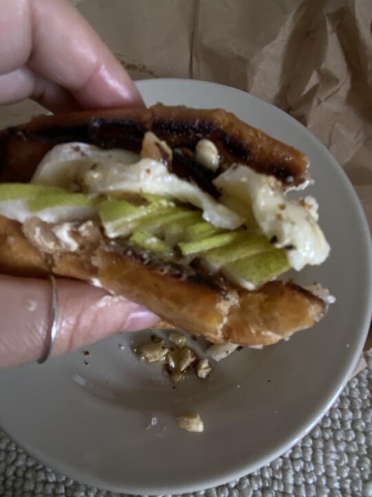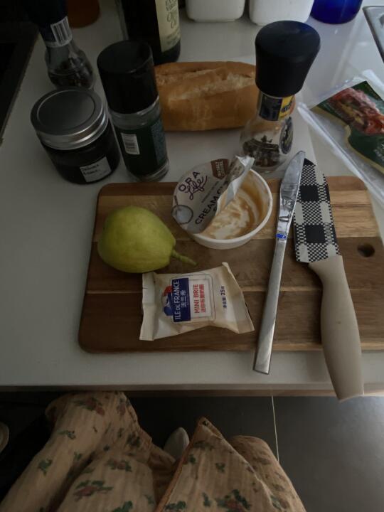 梨子切薄片 布里切薄片 核桃切脆 法棍对半切开黄油少量海盐煎一下 开始组装