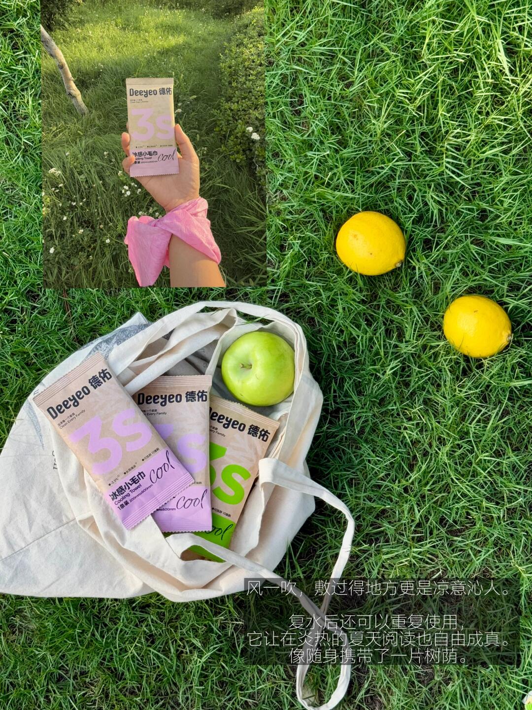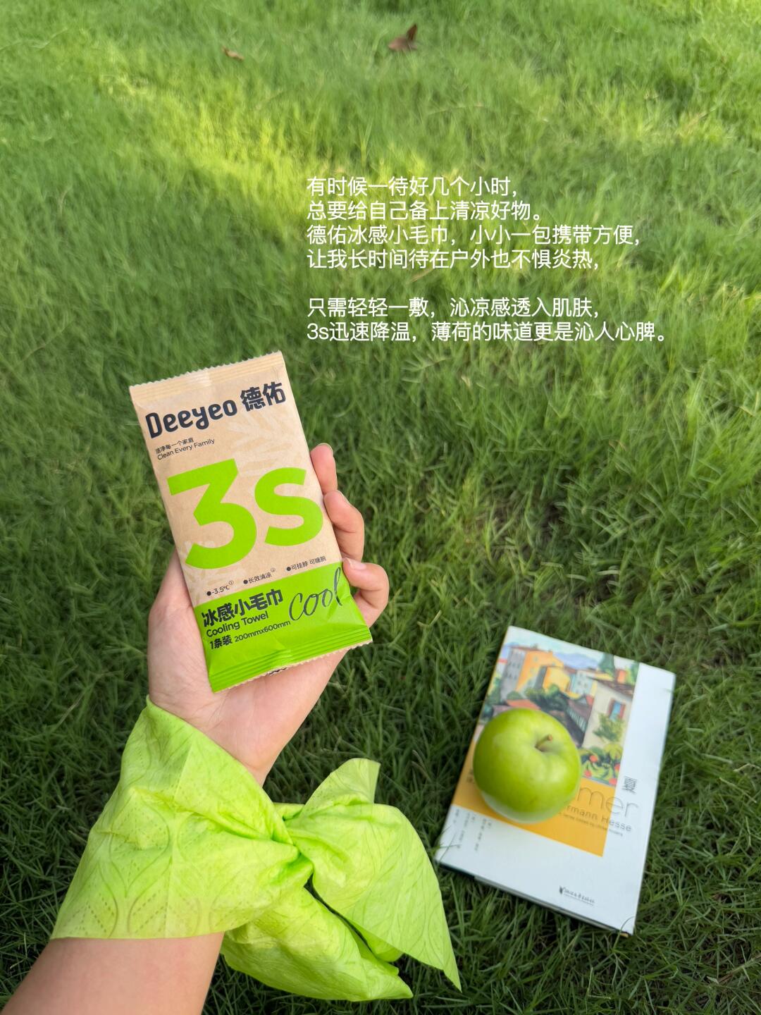 德佑冰感小毛巾,小小一包携带方便,让我长时间待在户外也不惧炎热,只需轻轻一敷,沁凉感透入肌肤,3s迅速降温,薄荷的味道更是沁人心脾。