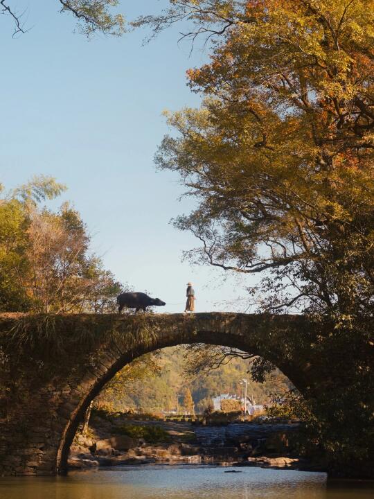 牧牛古桥,像是走进了小学课本里。