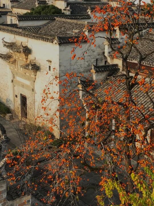 徽派古建和柿子树的结合,是道不尽的中式意境。