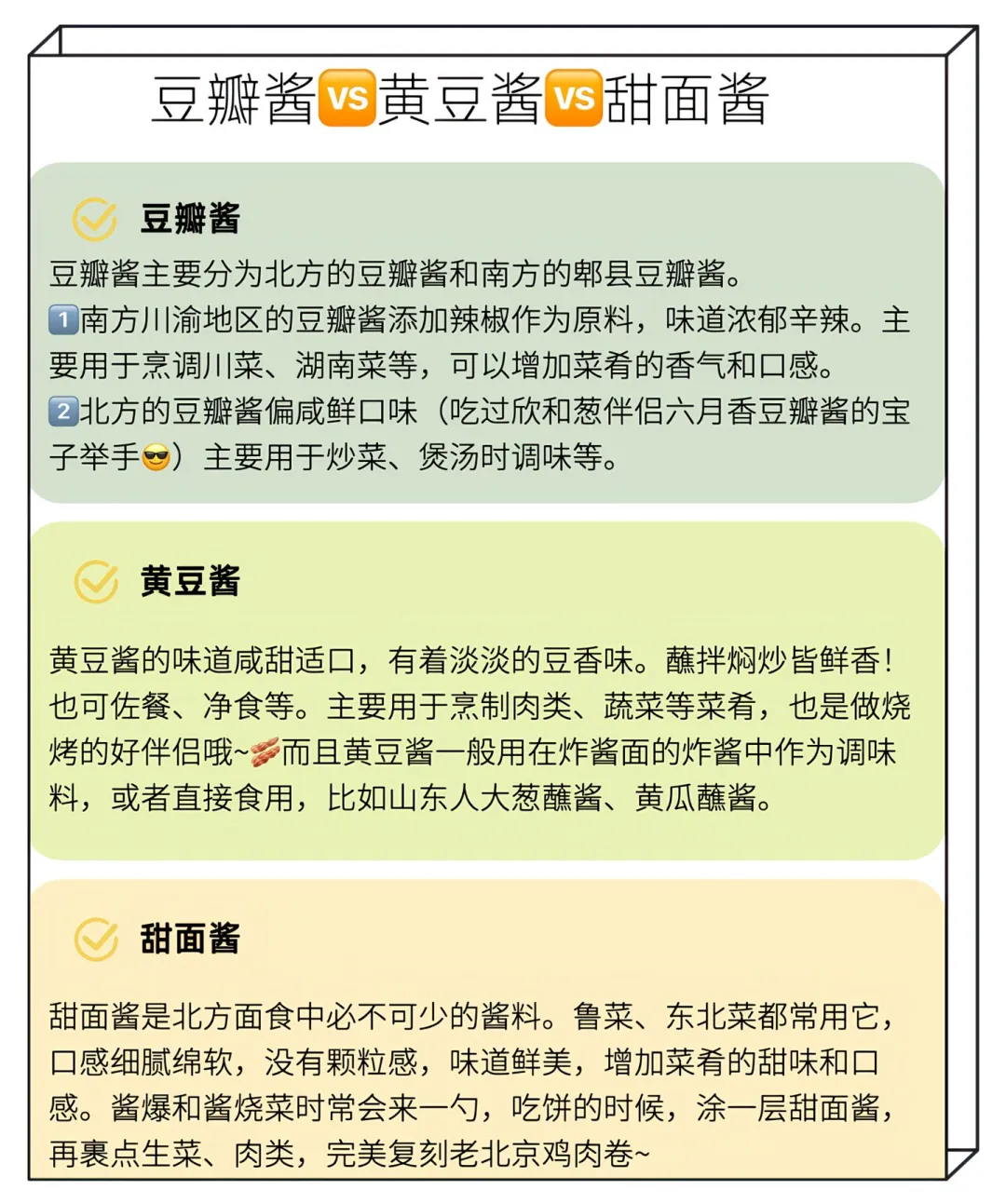别再傻傻分不清豆瓣酱、黄豆酱、甜面酱啦!一篇教会你选酱不迷路👇