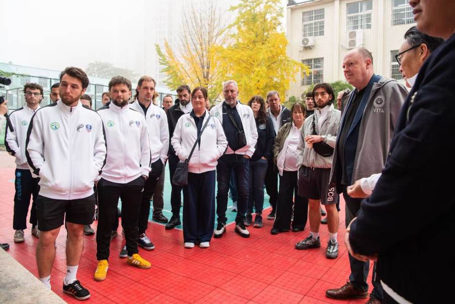活动伊始,郑上路小学校长周永涛向远道而来的客人系统介绍了学校足球事业的发展历程。自1974年在韩振国校长的大力倡导下组建首支足球队以来,郑上路小学历经十三任校长持续推动、三代教练默默坚守,始终秉持“为国育才”的足球教育初心。2024年正值球队建队50周年,校男子足球队以一场历史性突破献礼队庆——在“省长杯”决赛中创下赛事纪录,以全胜战绩勇夺小学男子组冠军。五十年来,学校足球队不仅在各级赛事中屡创佳绩,更先后培养出26名国字号球员,以及多名凭借足球特长考入国家重点高校的优秀学子,生动诠释了“以球育人”的丰硕成果。随后,周校长陪同来宾参观了校园足球明星墙,细致讲述从郑上走出的足球人才故事,使代表团深切感受到学校足球五十载的传承与荣光。
