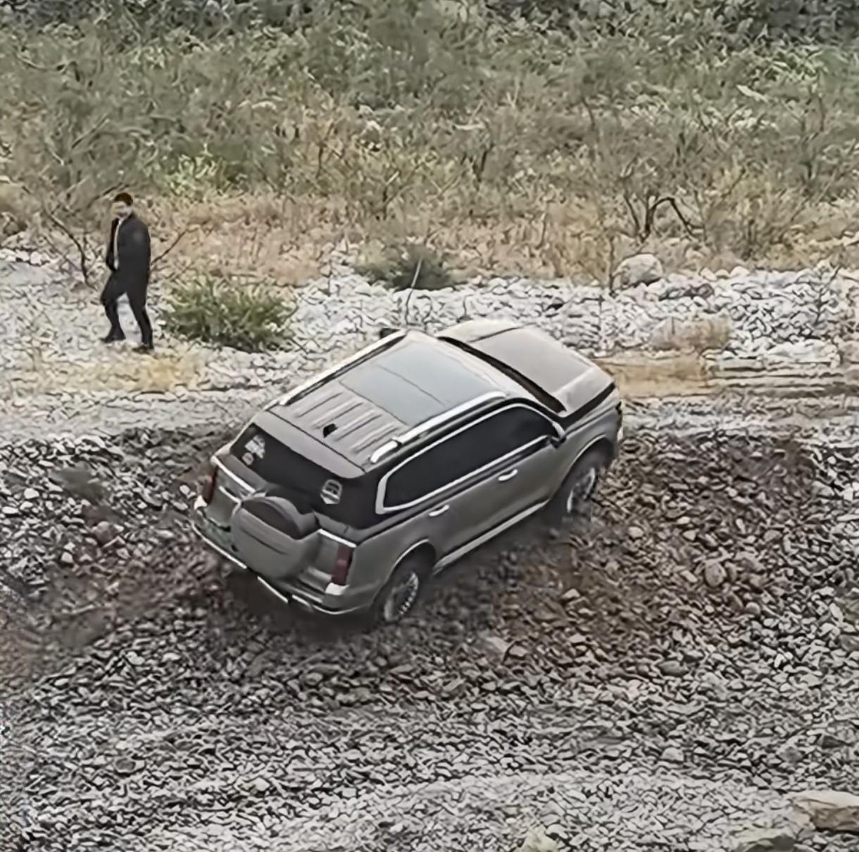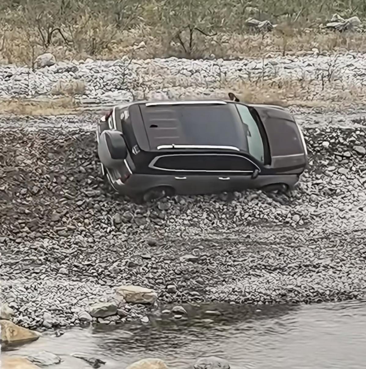 注意看, 这辆车的操作直接让人懵逼, 该车辆被困河滩后, 车主打算一脚油门冲出河