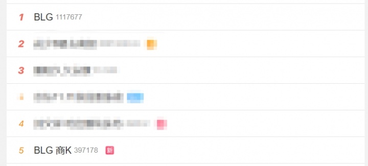 热搜词条#BLG#、#BLG 商K#冲上微博热搜第一、第五
