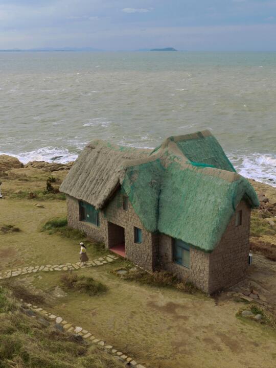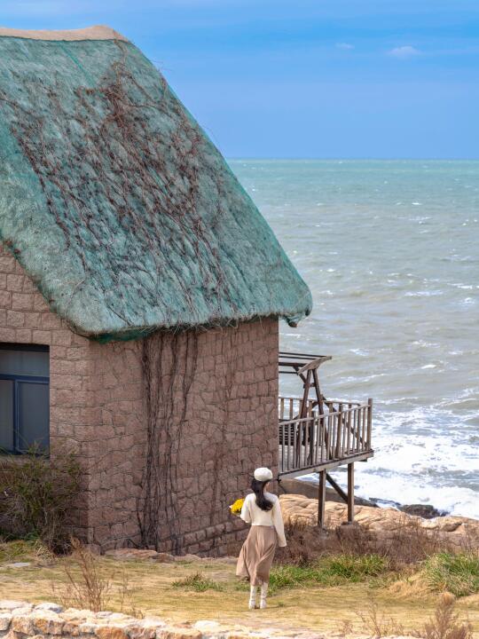 威海代表特别的海草房和大海同框