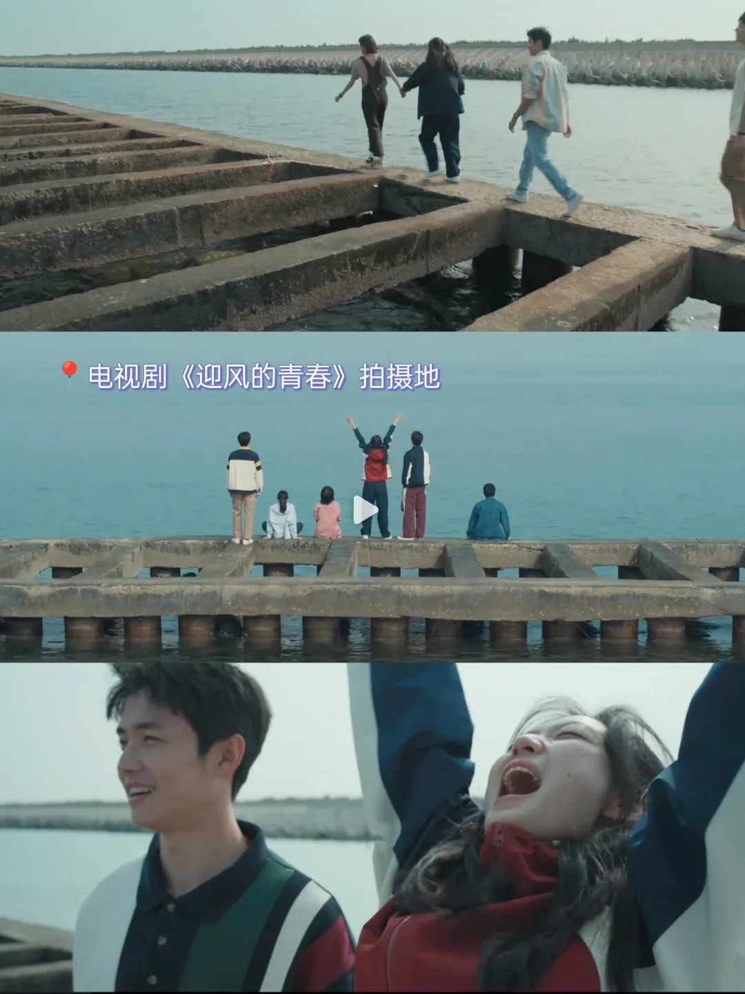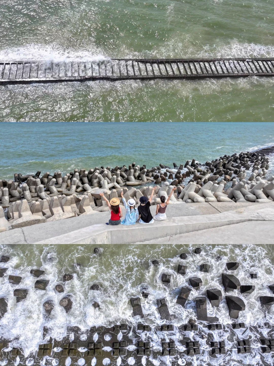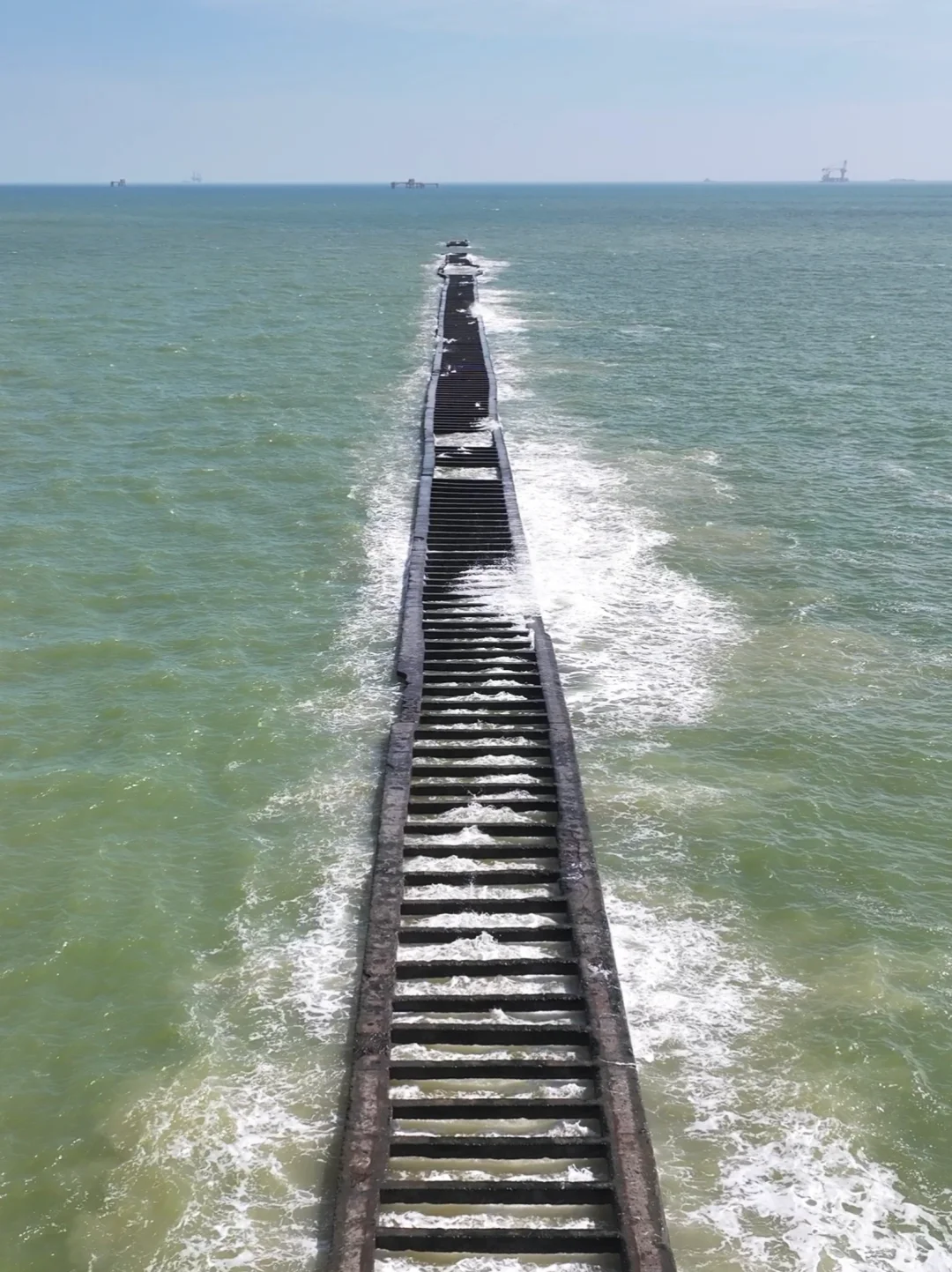 通往大海深处的路,本是一条人工修建的防潮大堤,岸边有很多钓螃蟹的人,浪大时候海浪穿过堤坝像钢琴弹奏