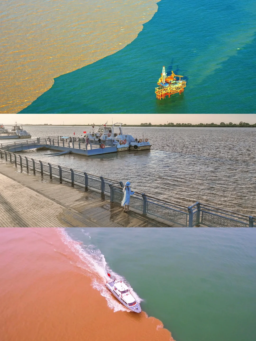 秋天来感受湿地风光,芦苇荡、红地毯,各种鸟类,提前购买船票,前往黄河入海口处看蓝黄交界的奇观。