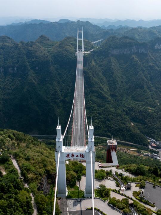 横架于德夯峡谷之上,震撼壮观,大桥也作为景点提供蹦极、攀爬等运动项目