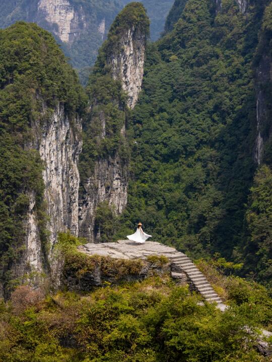 绝壁高崖间的突兀高台,一侧与山体相连其余边缘临空,下面是深不见底的山涧,现实版仙侠世界
