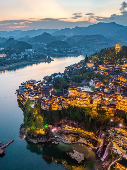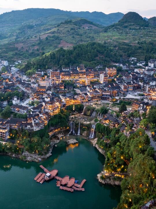 两千多年历史的古镇,建造在瀑布上面,亮起灯景观壮观无比,现实版的世外桃源