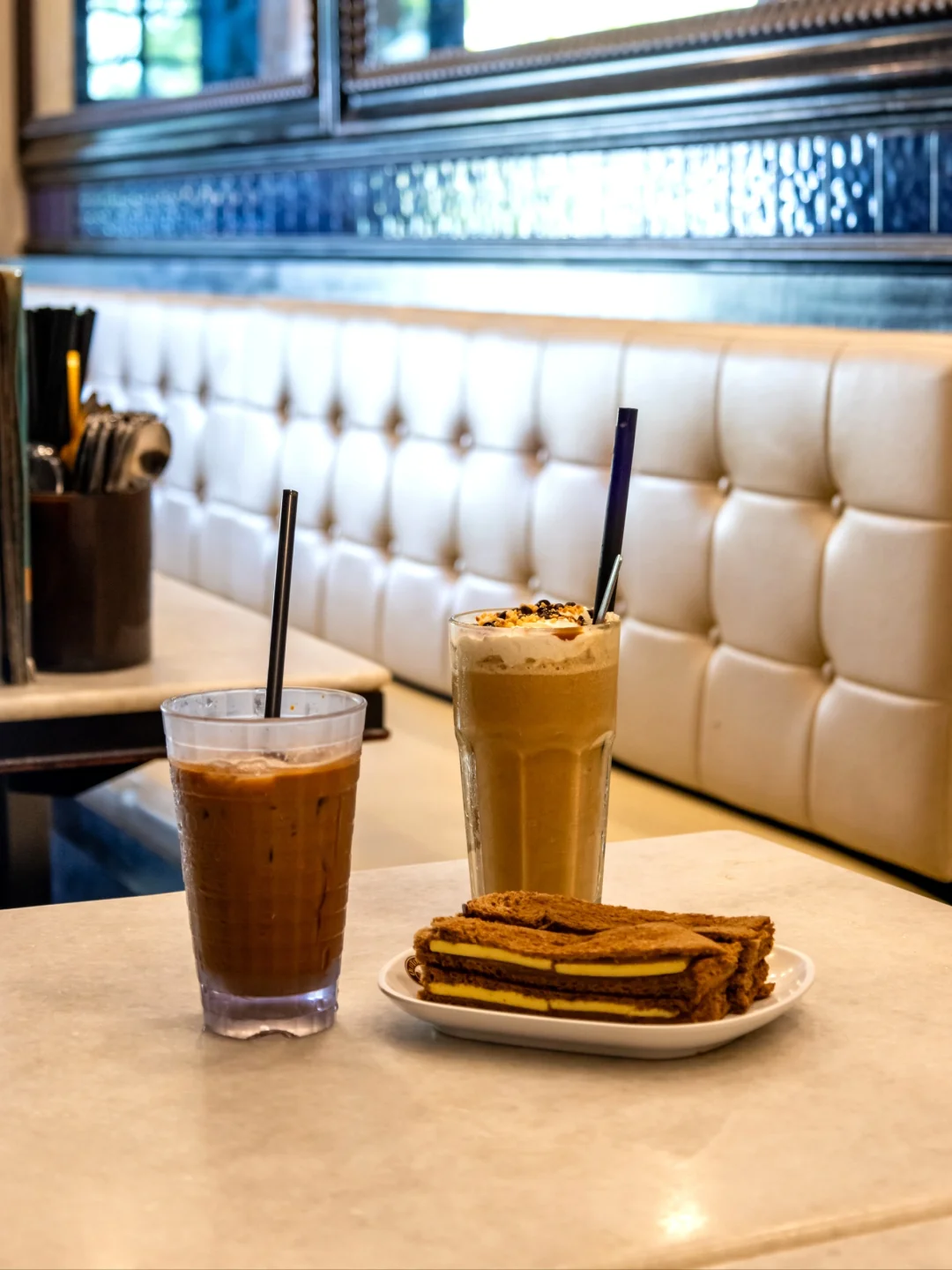 点一杯特色冰咖啡和吐司吹空调非常舒服