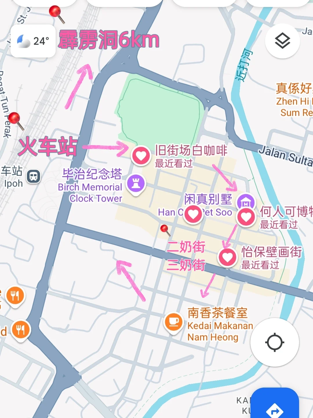 🗺️路线安排:怡保主要景点都集中在火车站附近,很适合citywalk,稍远一点的霹雳洞约6km建议到站打车过去