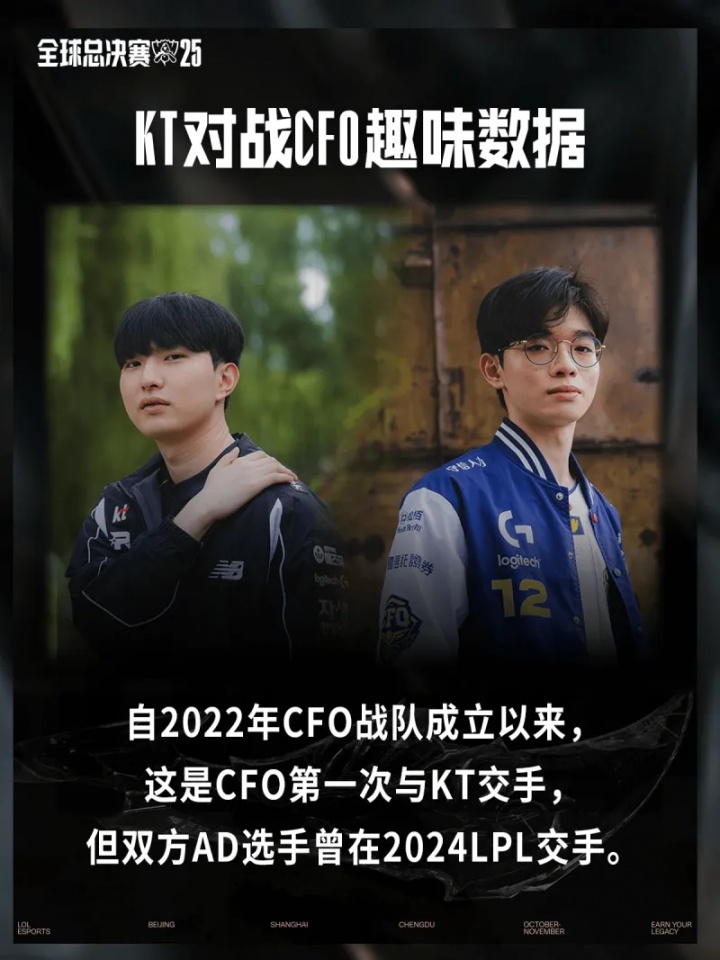 KT对战CFO趣味数据:自2022年CFO战队成立以来,这是CFO第一次与KT交手,但双方AD选手曾在2024LPL交手。
