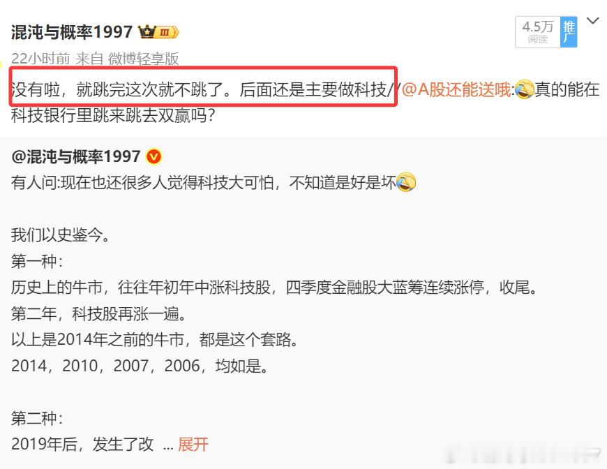 这次老登做完,回归小登科技。短期内不再横跳了。